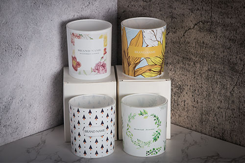 Expensive but luxury, glazed ceramiccandle jar is shiny.Unglazed ceramic jar is matte. Color glaze and decal printing is available. Handmade product, small MOQ .